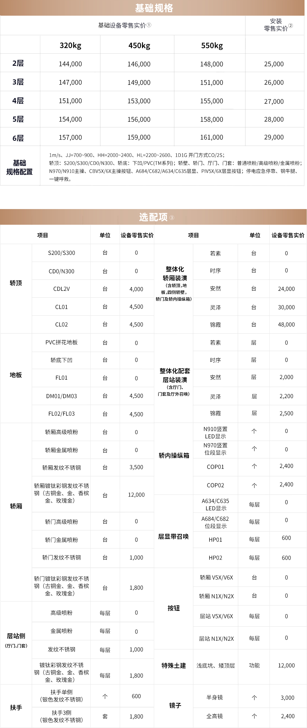 ④本页价格不含运费,安装零售实价中含首年保养费,单位为元。